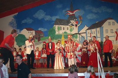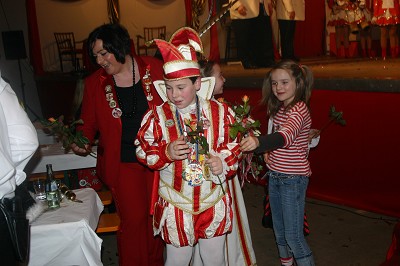 Der Kinderprinz aus Dom Esch freute sich über die "Blömscher" seiner Jecken und die Mieler und Dom Escher Toliäten grüßten von der Bühne.