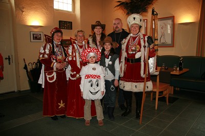 Die Gastgeber des Restaurant „Graf Belderbusch“ im Golfclub Schloss Miel, Stefan und Andrea Hoffmeister hatten das Dreigestirn samt Gefolge zu einem herrlichen Prinzenfrühstück am Freitag den 12. Feb. 2010 geladen. Andrea und Stefan: "Herzlichen Dank" dafür.