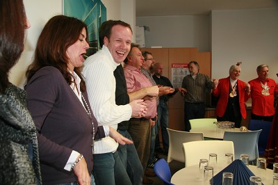 Vor das Essen hat der Karnevalsgott Vorträge und das "Fliegerlied" gesetzt.